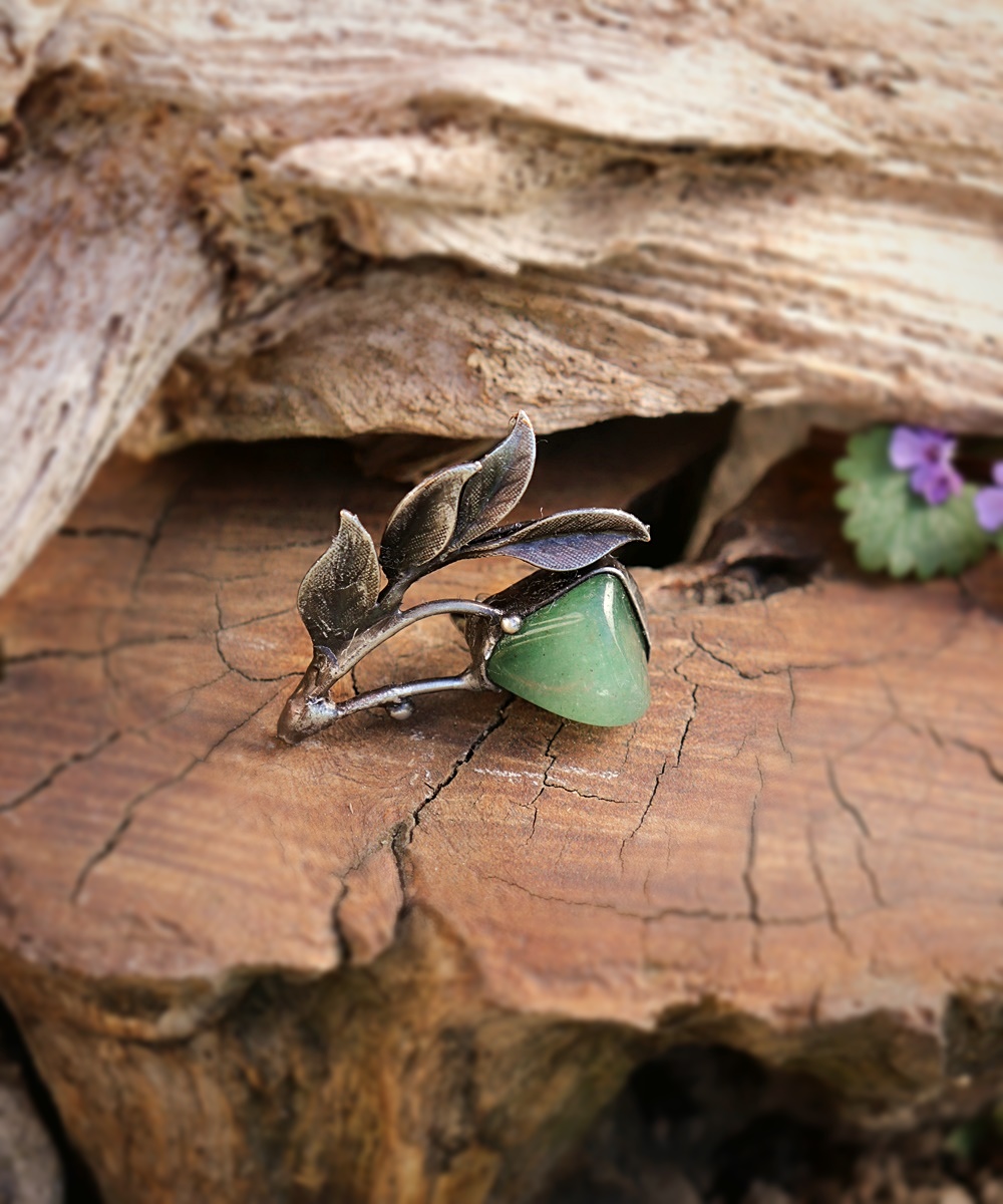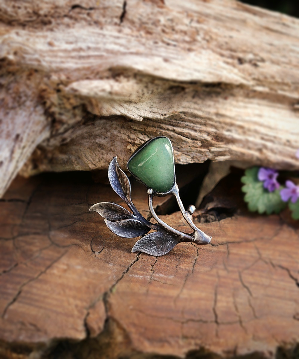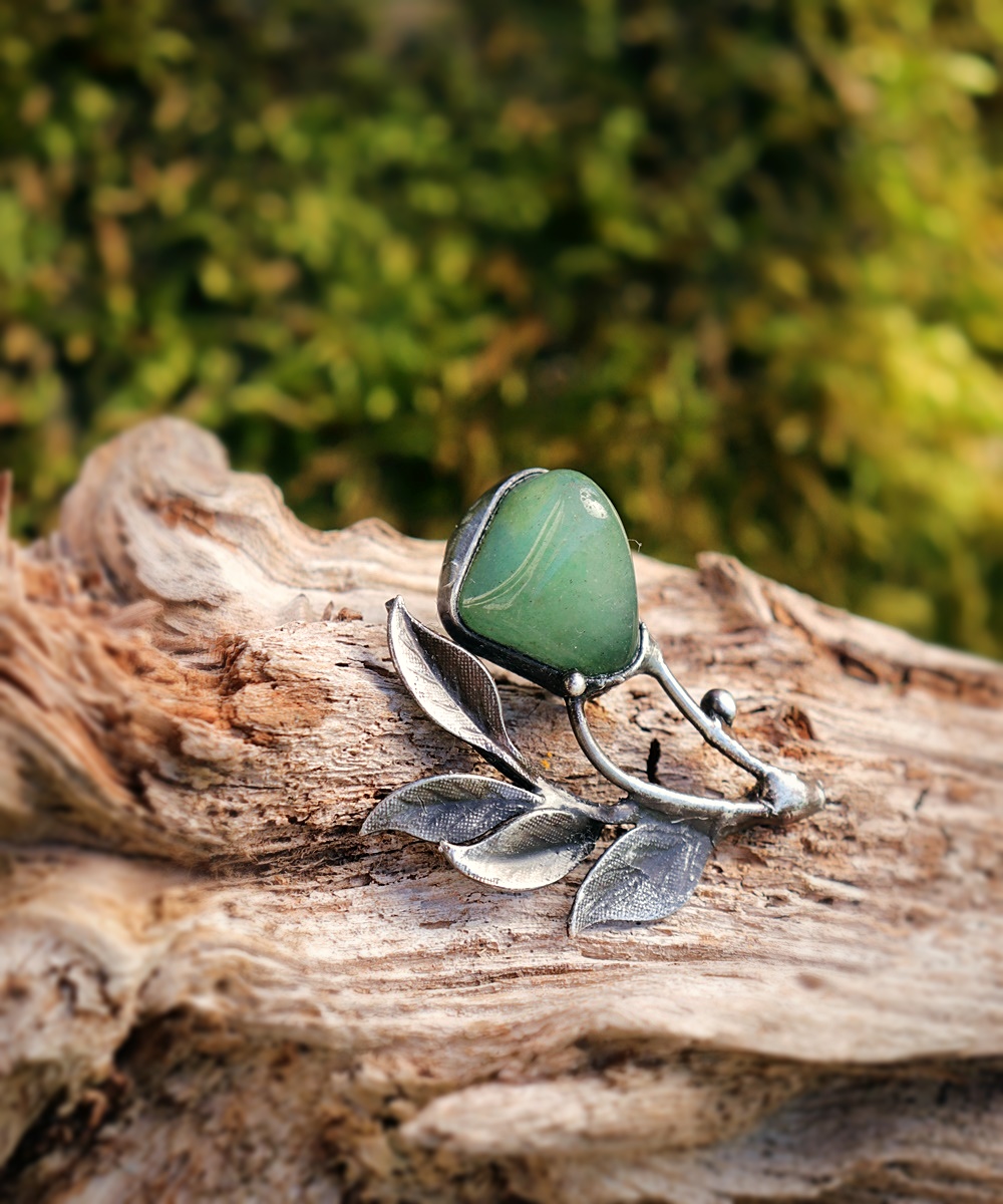Jemná brož inspirovaná přírodou a novými začátky. Avanturín je kámen štěstí a růstu – přináší lehkost, harmonii a podporuje odvahu vykročit novým směrem. Organický tvar listů podtrhuje propojení s přírodou a klidem.
