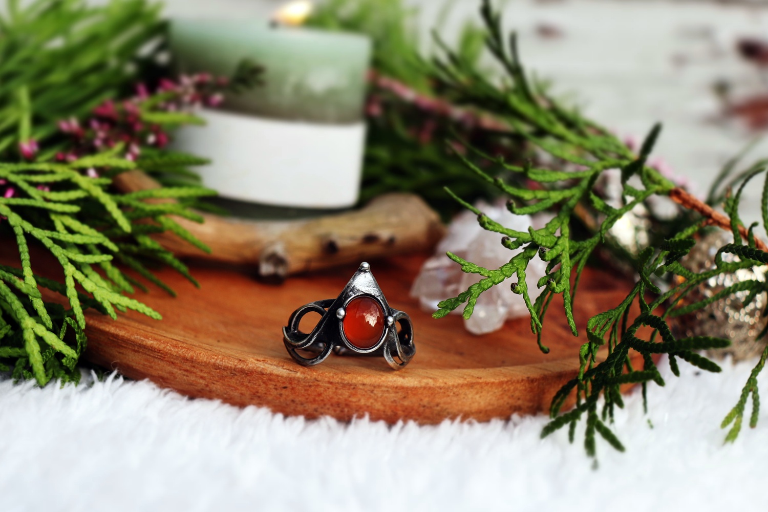 Síla okamžiku - cínovaný prsten s karneolem