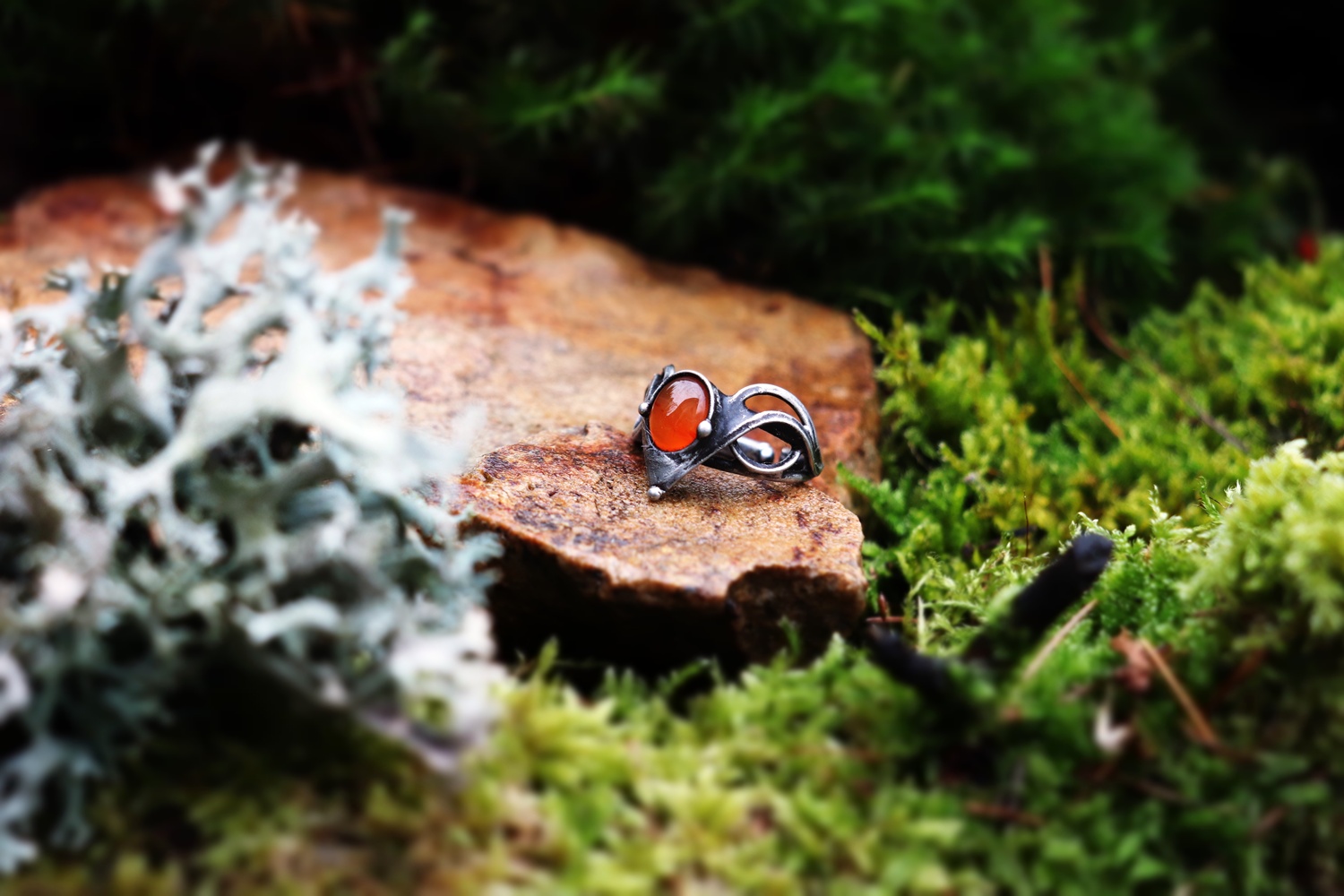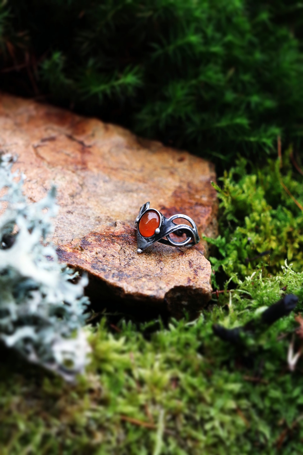 Elegantní cínovaný prsten s karneolem, který dodá sebevědomí a energii. Každý prsten je originál, který propojuje ženskou sílu a zemitou stabilitu. Skvělý doplněk pro ženy, které chtějí vystoupit z davu a zazářit.