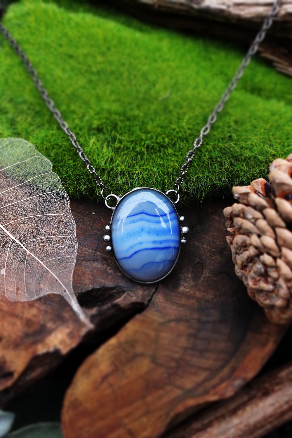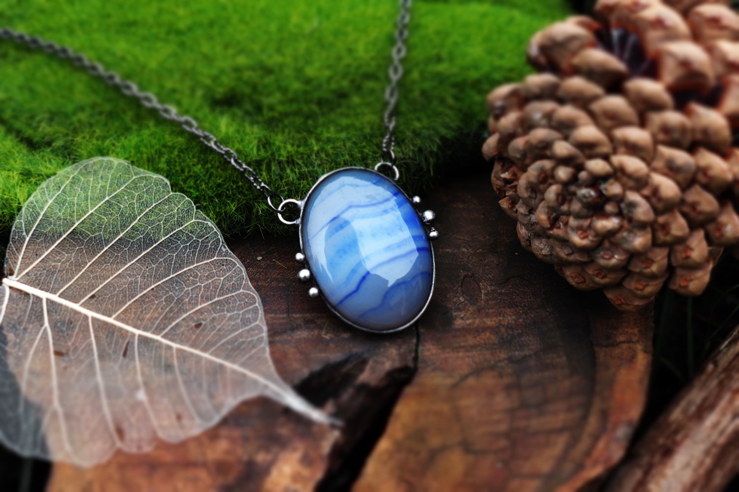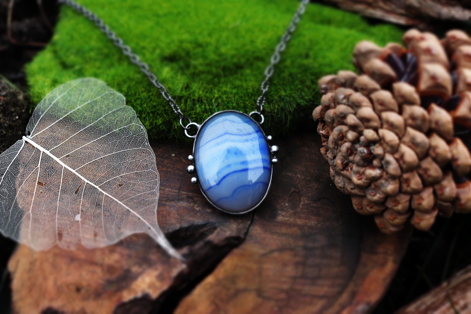 Modrý achát je jemný, harmonizační kámen, který přináší klid do myšlenek i emocí.