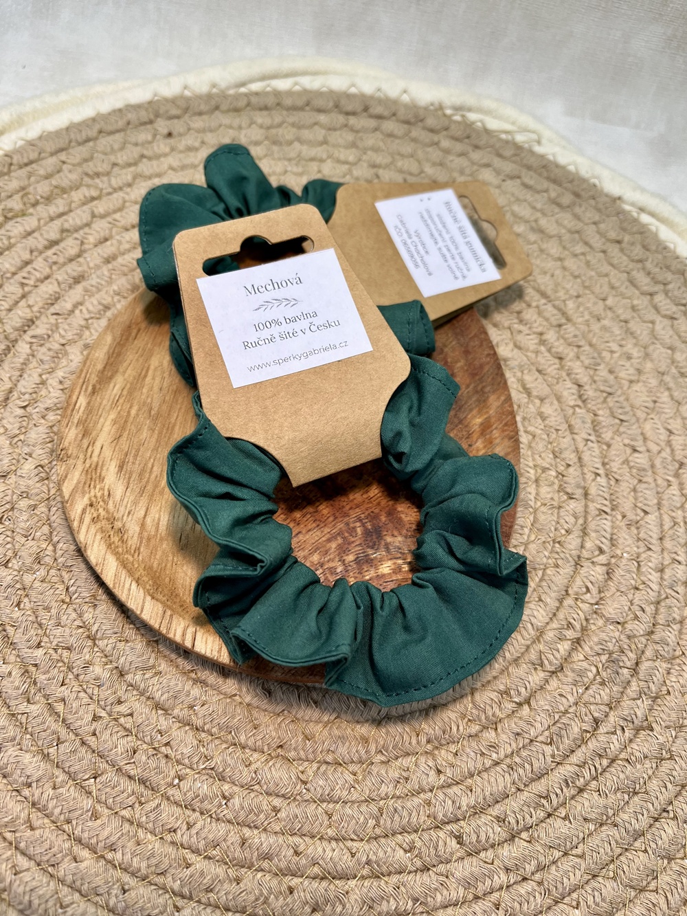 Mechová scrunchie v hlubokém přírodním odstínu zelené přináší klid a harmonii lesa do každodenního stylingu. Elegantní, jednoduchá a nadčasová – vhodná jak pro ženy, tak pro dívky, které mají rády minimalistické doplňky. Díky 100% bavlně je příjemná na dotek a šetrná k vlasům.