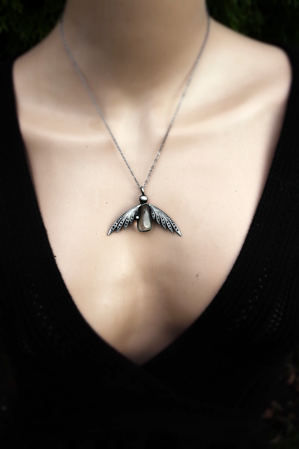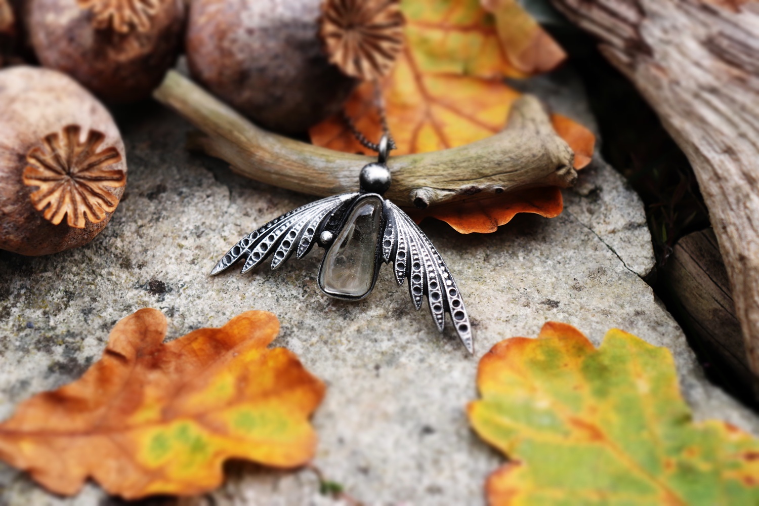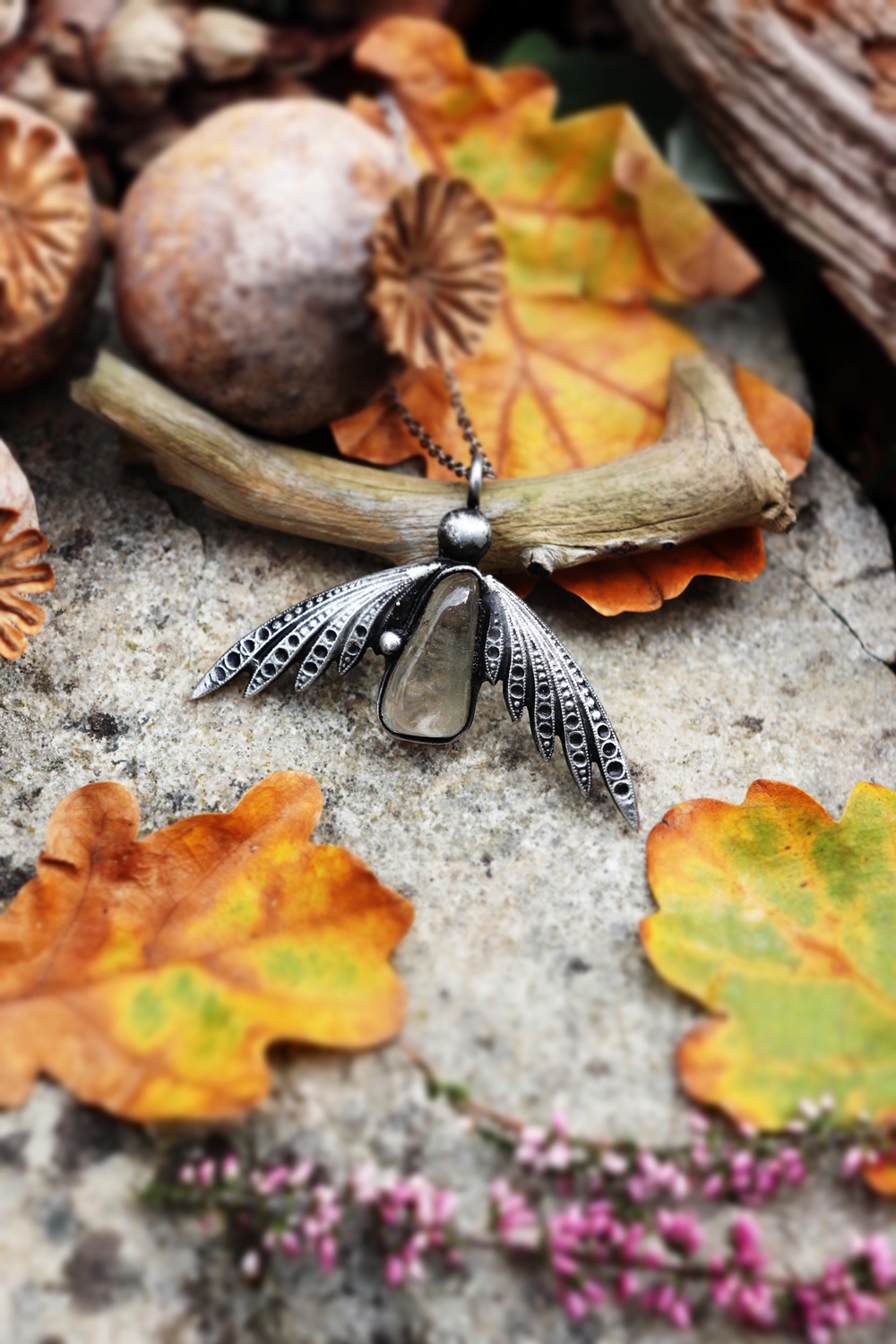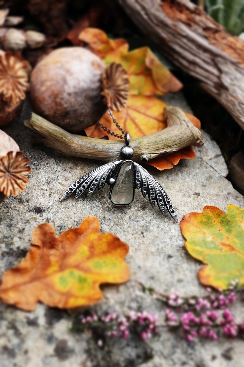 Křišťál – mistr mezi kameny – v podobě andělských křídel. Tento šperk je čistým talismanem světla, který chrání před negativní energií a zároveň přináší jasnost a rovnováhu. Ideální jako dárek s hlubokou symbolikou.