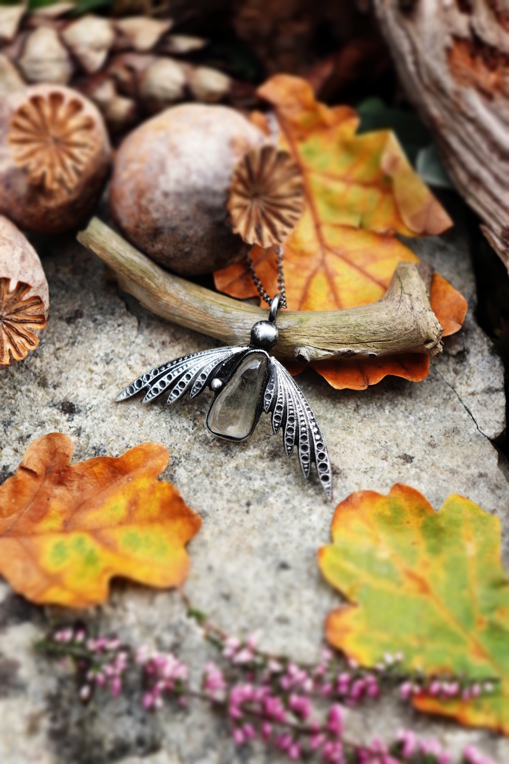 - Materiál: růženín, měsíční kámen, zelený achát, cín s příměsí stříbra