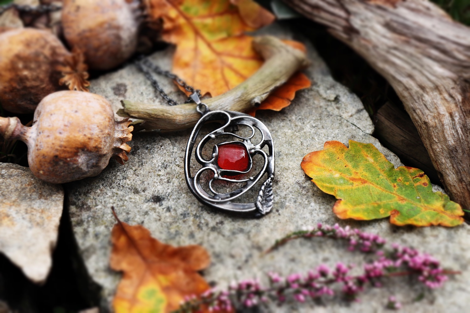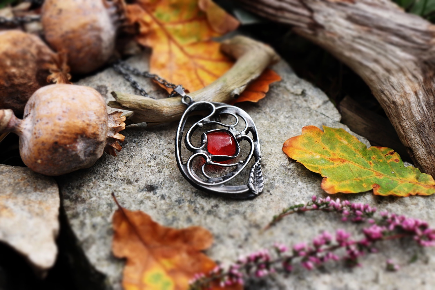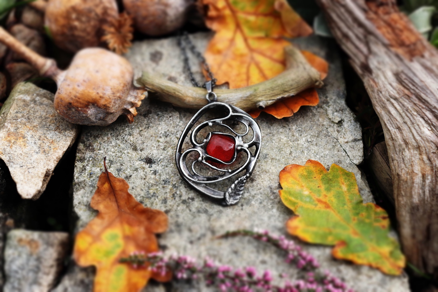 Výrazný amulet s červeným sklem připomíná žár ohně a odvahu bojovnice. Tento šperk je symbolem vášně, síly a vitality. Je ideální pro ženy, které se nebojí ukázat svou energii a přitažlivost.