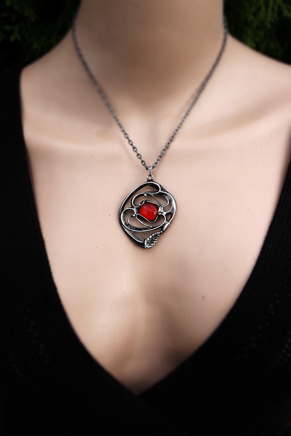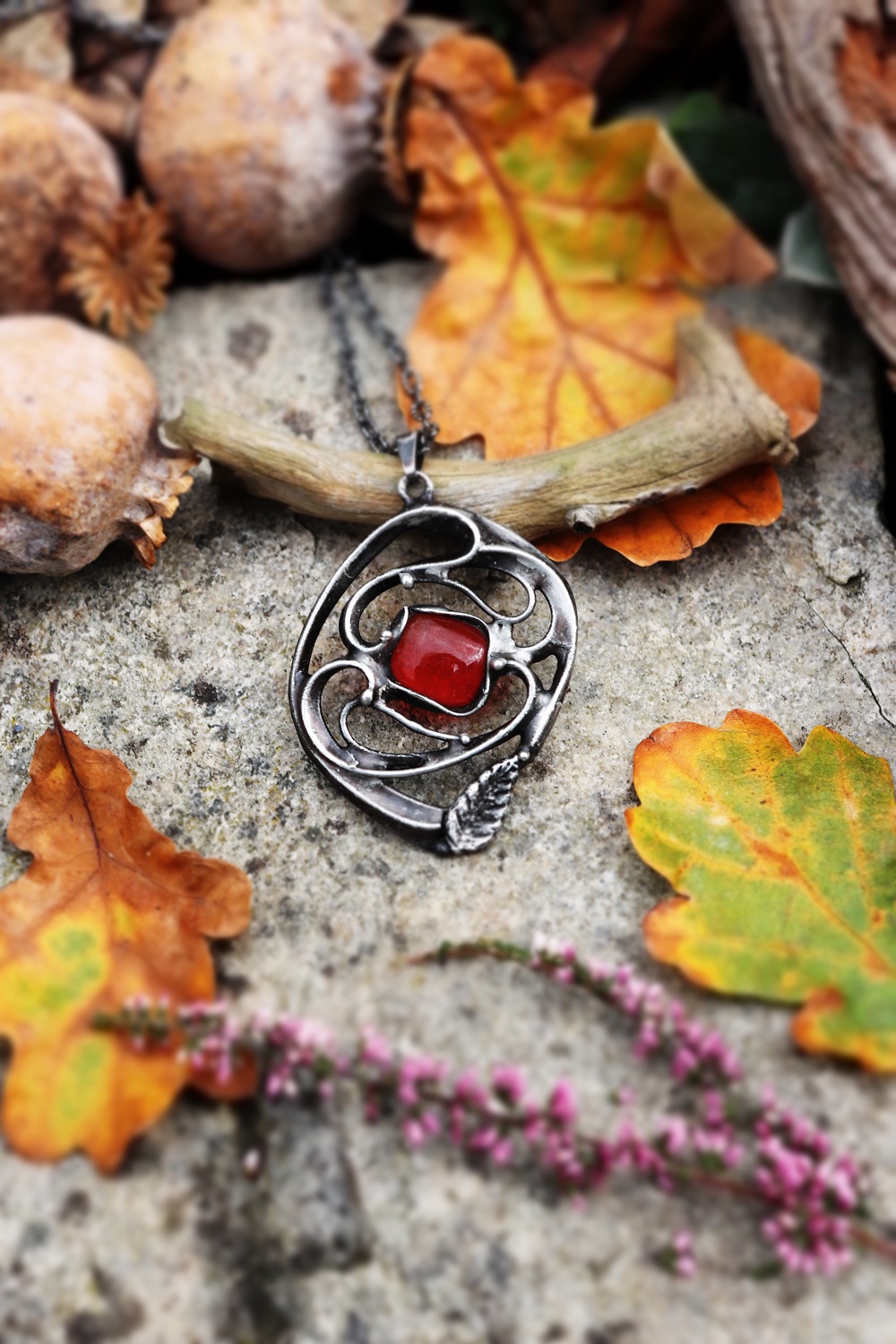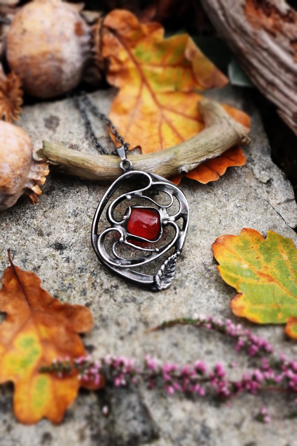 Výrazný amulet s červeným sklem připomíná žár ohně a odvahu bojovnice. Tento šperk je symbolem vášně, síly a vitality. Je ideální pro ženy, které se nebojí ukázat svou energii a přitažlivost.