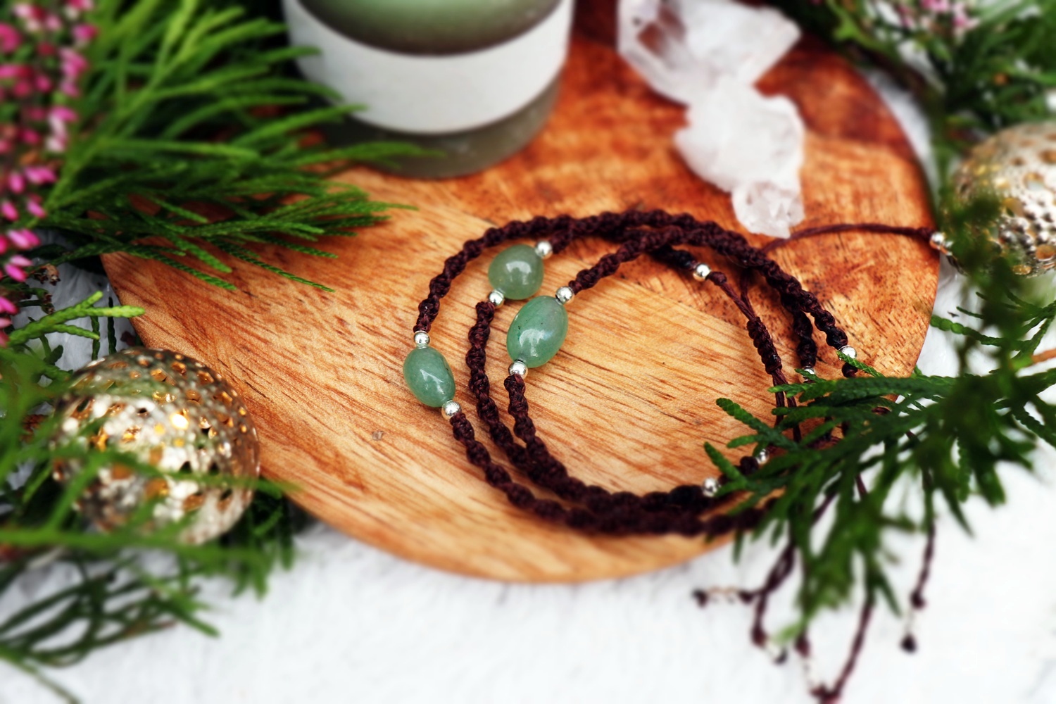 Jadeit je kamenem klidu, rovnováhy a moudrosti. Pomáhá najít harmonii mezi srdcem a myslí, podporuje vnitřní mír a přitahuje štěstí. Náramek je ideálním amuletem pro období změn, kdy potřebuješ stát pevně a s klidem v srdci.