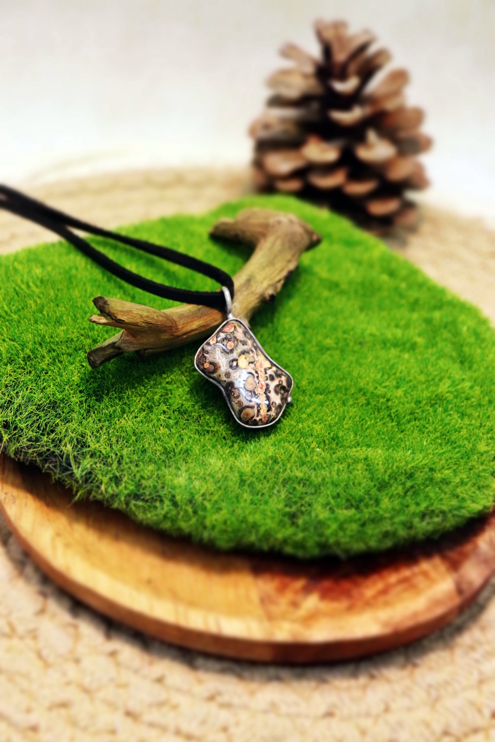 Ručně vyrobený přívěsek s krásným jaspisem leopardím.