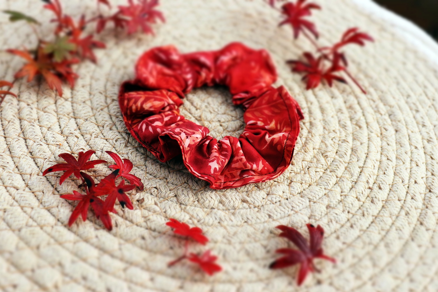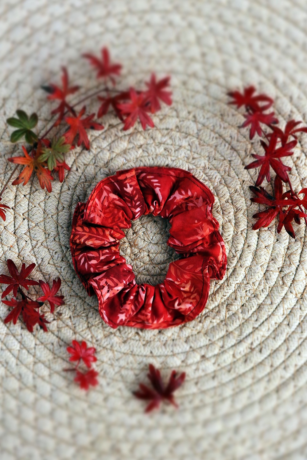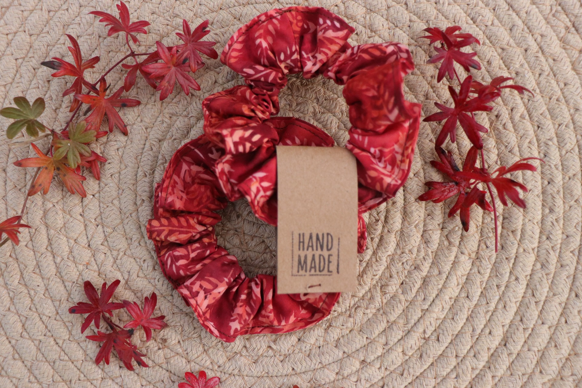 Teplé tóny podzimu, vůně listí a klidný rytmus přírody – přesně takový pocit přináší ručně šitá gumička „Kouzlo podzimu“ z kvalitní batikované bavlny od Hoffman Fabrics.