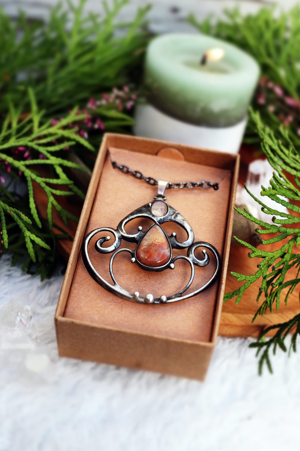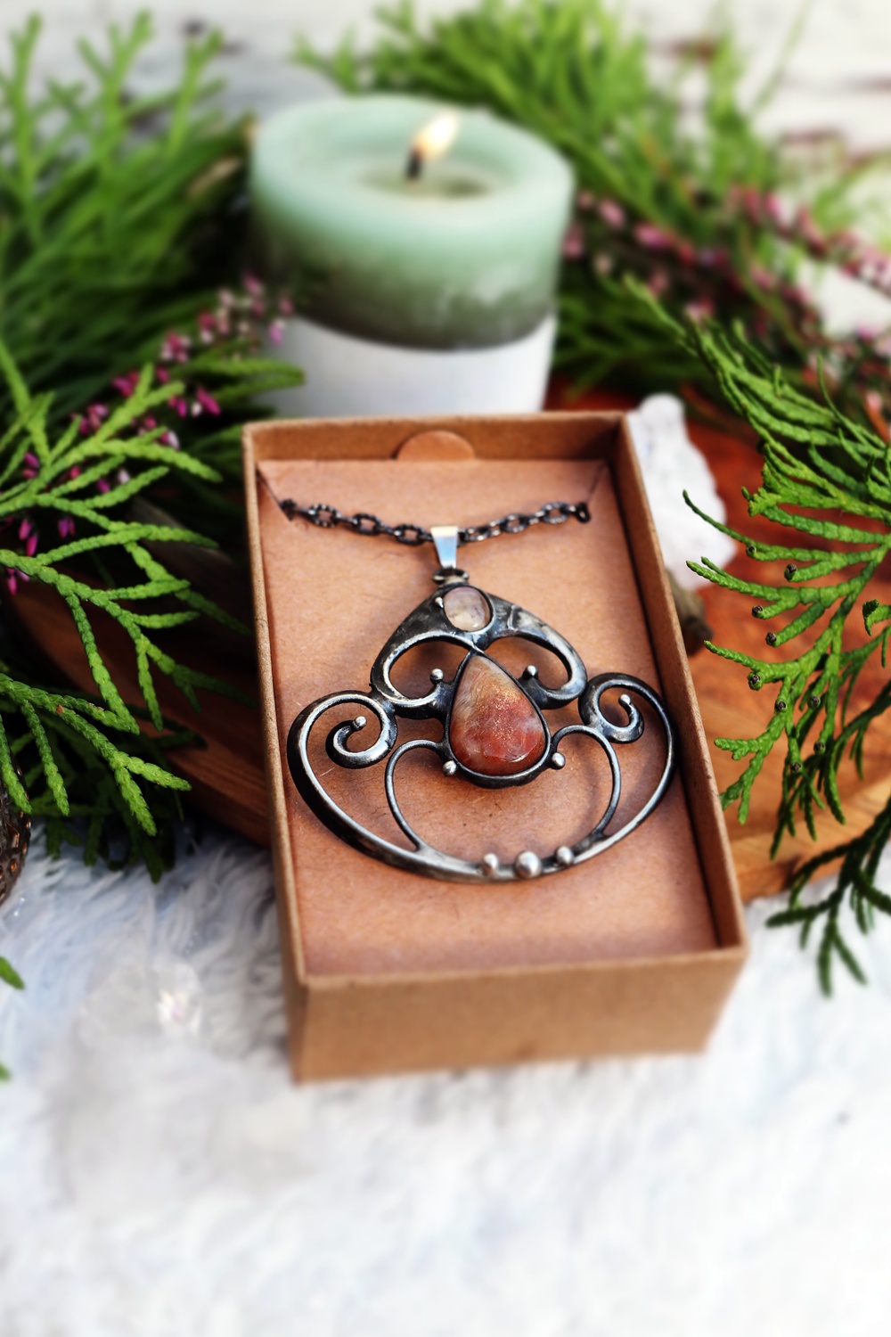 • Materiál: sluneční kámen, měsíční kámen, cín s příměsí stříbra