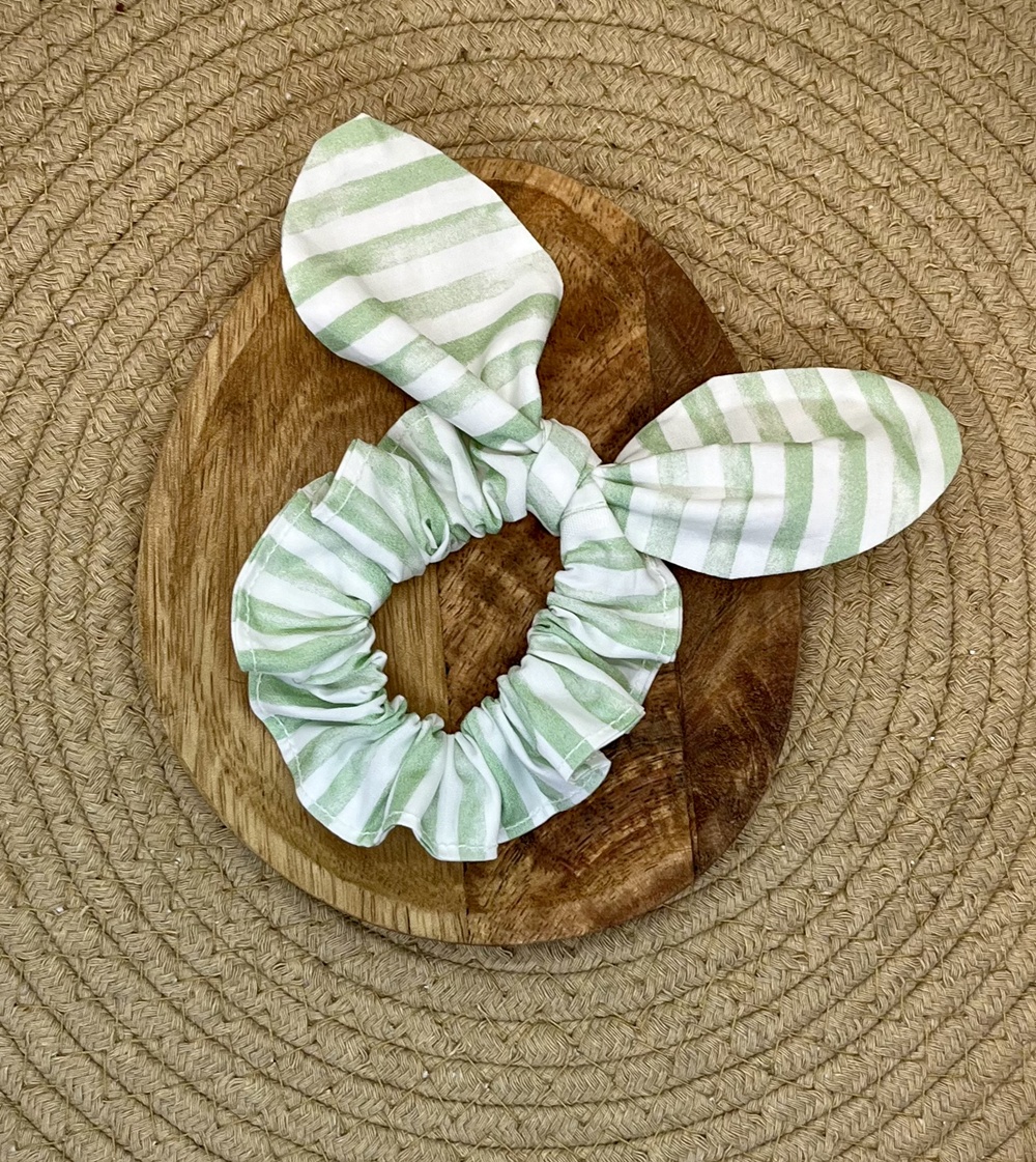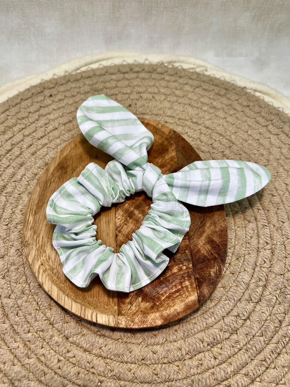 Zahradní ráno je svěží scrunchie s jemnými pruhy a lehkým venkovským nádechem. Připomíná klidné ráno na zahradě, kdy tráva ještě voní rosou. Látka je hebká, pružná a velmi příjemná na nošení – vloží do účesu šmrnc i přirozený půvab.